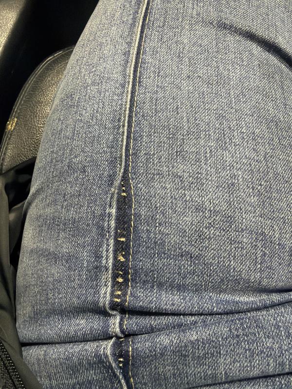 I love the design of these jeans how the seams are just right and the texture of the jeans and i can also put them on with ease wish you could by these in bulk but they are very confertable jeans.