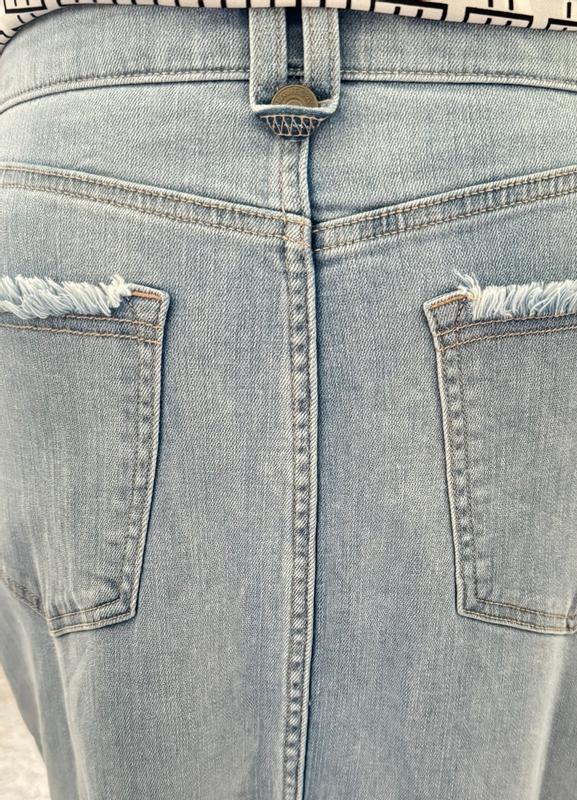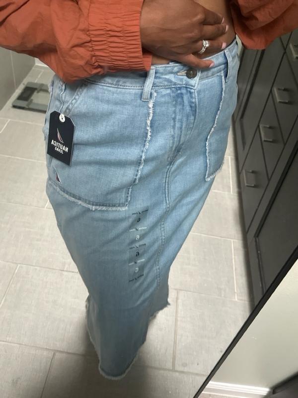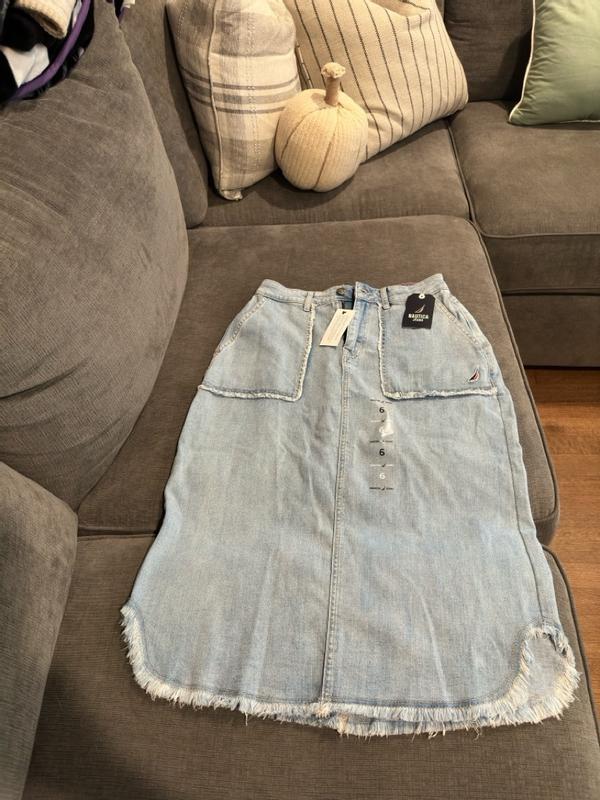 The skirt is super comfortable and stylish. It can be used for casual occasions or for evening. The quality of denim is very good, it’s not thick and lasts for long. It feets me perfect.