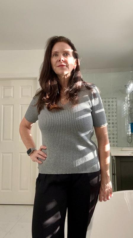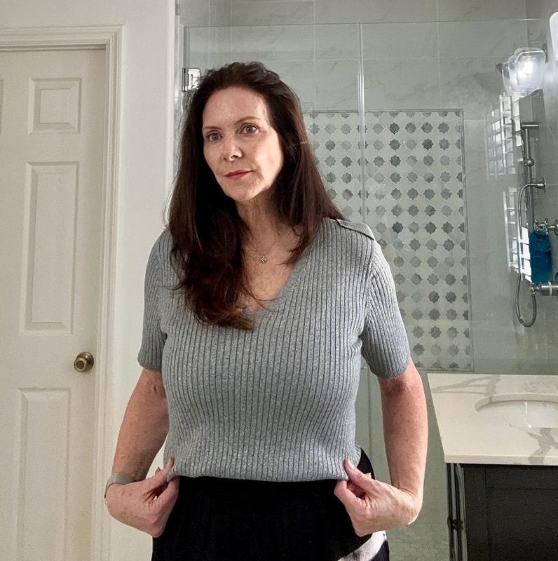 This is a great versatile top that can be dressed up or down. The fit is flattering and is fitting without being tight. I was worried that the material would be itchy but it wasnāt and is very comfortable.