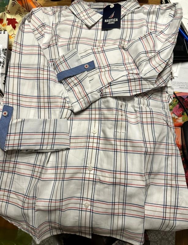 This Nautica women’s shirt is a real treasure. It is classic, comfortable, and surprisingly durable. I love wearing it because the fabric feels soft yet sturdy. It holds its shape beautifully after washing with no fading or shrinking. You can tell it’s well made and a quality garment. The fit flatters me without being tight and it allows easy movement while still looking polished. I especially love the small details like the contrast cuffs and neat buttons that add a touch of style without overdoing it. The plaid pattern is crisp and timeless, making it easy to pair with jeans or dress pants. It’s true to size and the length is just right for wearing tucked or untucked. Overall, it’s a versatile shirt that feels as good as it looks and holds up to everyday wear.
