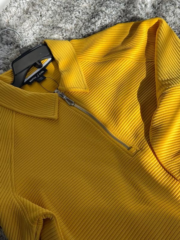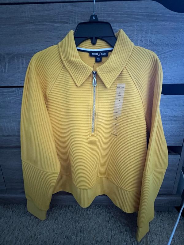 I absolutely love this Nautica quarter-zip sweatshirt! The textured ottoman fabric looks so stylish and unique — it gives the sweatshirt a more elevated, polished look compared to regular fleece tops. The material is soft, warm, and feels very comfortable against the skin. The fit is relaxed but still flattering, and the quarter-zip design makes it easy to layer. The color is gorgeous and adds such a nice pop to any outfit. Perfect for everyday wear, running errands, or staying cozy at home. Great quality, great fit, and super cute — highly recommend! 💛✨