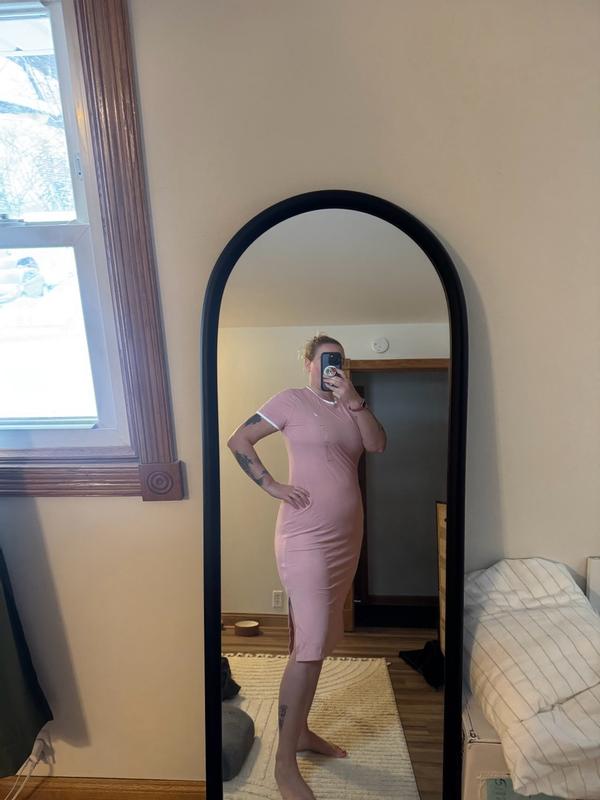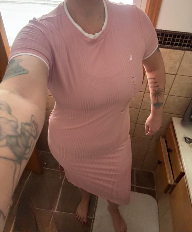 This material was so comfortable and buttery soft! It had great stretch, and the overall fit was perfect. It was great for walking around the cabin on vacation and more of a sleep shirt. I would have loved to wear this in public with a pair of slip on sneakers, but the length was a little too much for me. I would have liked a cut closer to knee length. For reference, I am 5‘3“. This wojld be adorable on someone taller