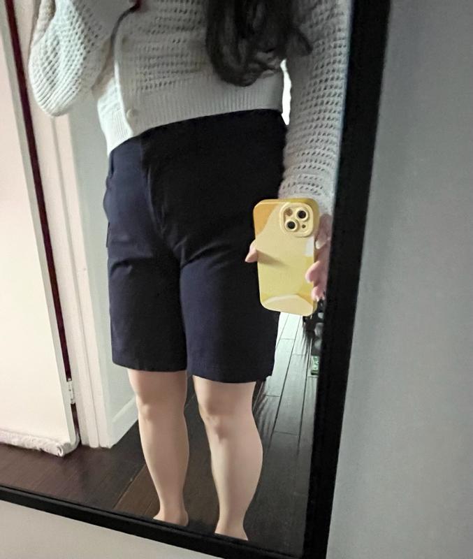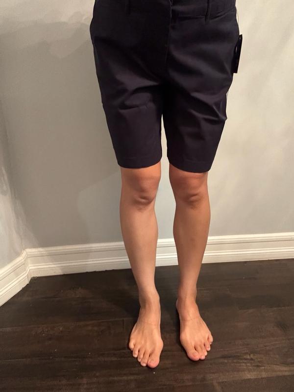 Comfortable Bermuda short. These fit nicely and are very soft! They are a little longer than I typically wear but are true to size in the waist. I think they are cute if you are in your mom era.