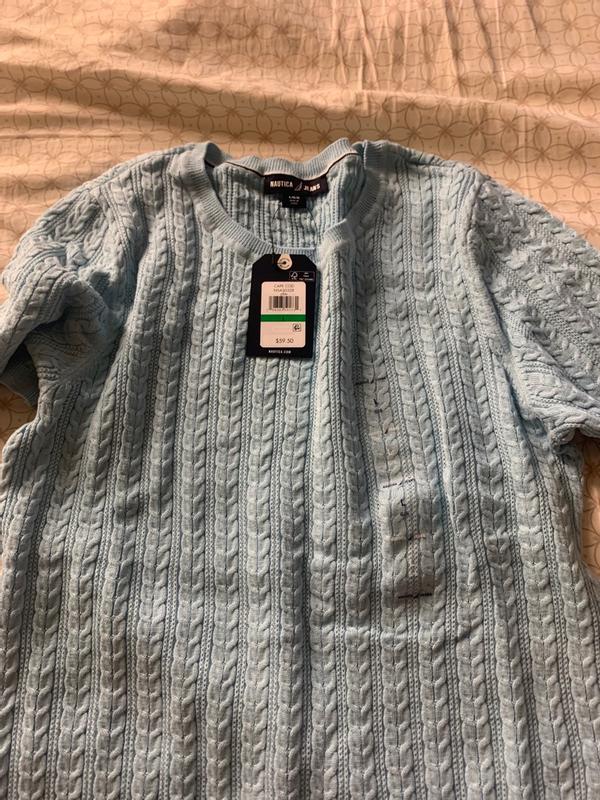 I love my Nautica short sleeve sweater. The blue color is so pretty and flattering. The material is very soft and will last a long time. I feel so pretty when I wear this sweater!