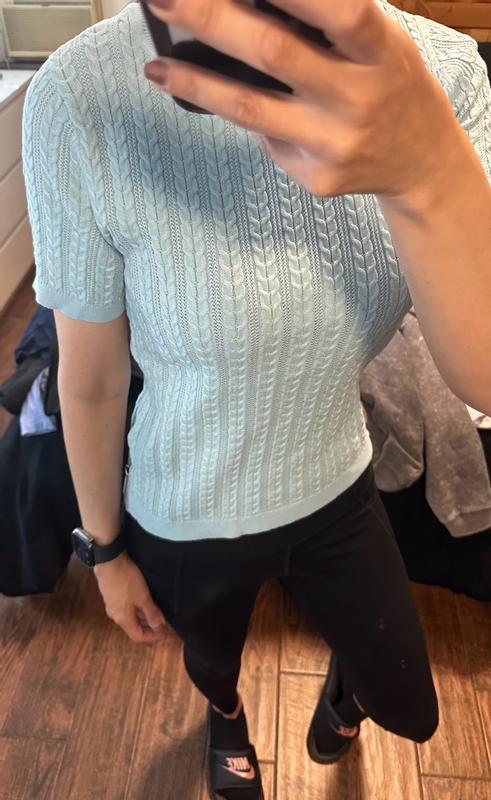 Women’s Nautical Cable Knit Short Sleeve Sweater is a nice addition to your spring/summer wardrobe. This sweater is light weight and soft. Can be worn with a cardigan or alone. It has held up well after a few washings. This looks great with dress pants or jeans. Can be easily dressed up or down. Great item!
