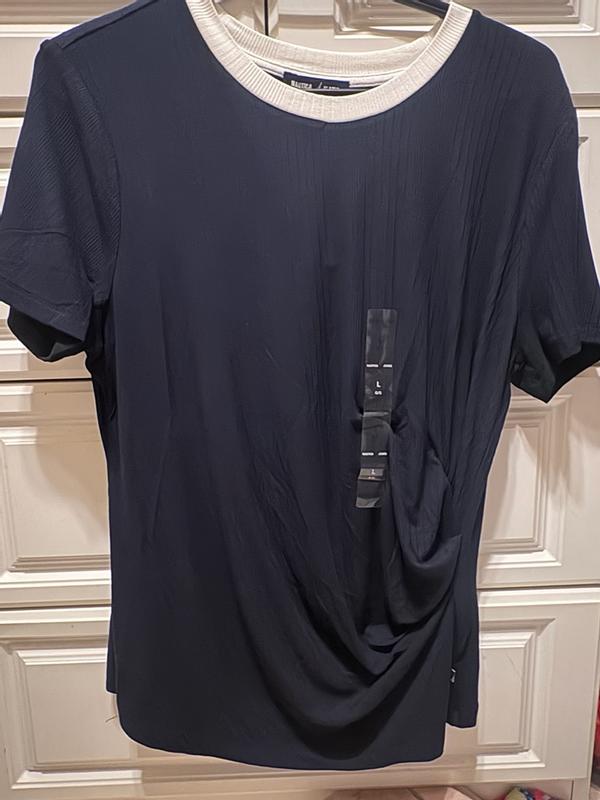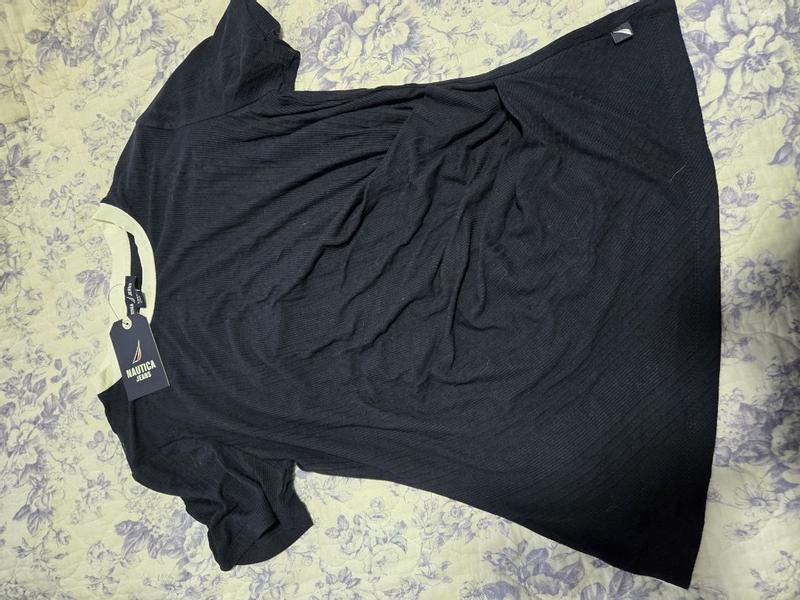 this short sleeve top by Nautica, is the most perfect everyday tshirt! I love the signature detail around the neck as well as the twist lop to enhance the waist! It feels so soft and elegant! It is true to size too, and its quality is spectacular!