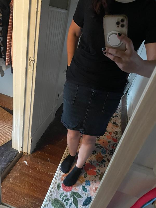 I wanted to love this, I really did. The fabric is synthetic, and has a lot of stretch to it. It would have been okay even though I refer cotton or something more breathable except for the twist they built in. I’m not sure that it looks as good on as it does on the hanger as you can see from my photo. It kind of looks like I wrinkled my shirt and forgot to iron it. The color is so dark that you can’t tell the twist is a purposeful design.