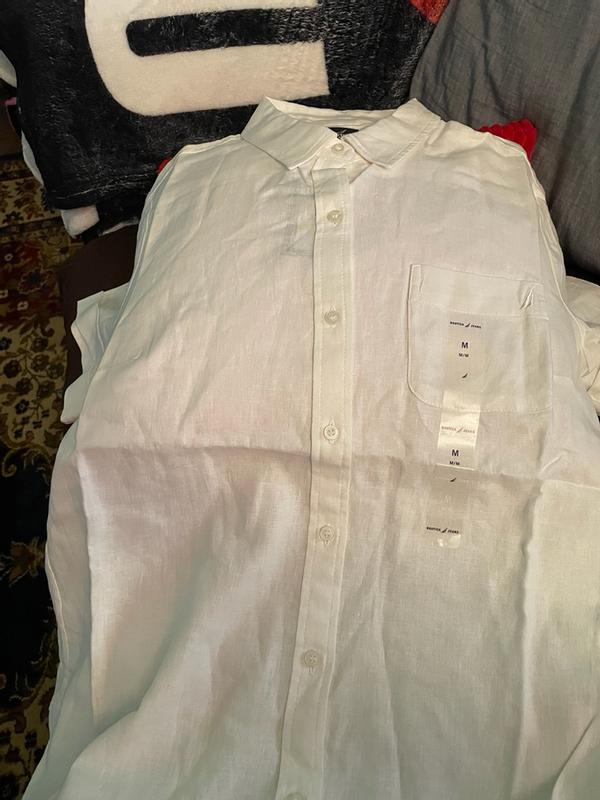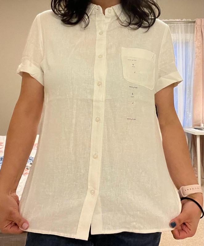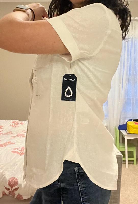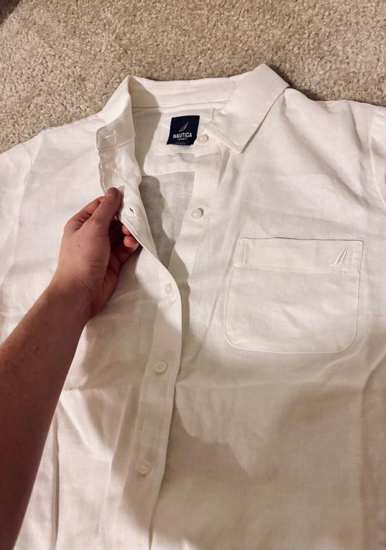 This linen shirt is from Nautica, and size S fits just right for me. It’s very comfortable with great quality. And it’s really easy to pair with. I loved that how it shape my body curvy in that casualness. It must be great for summertime. I can match it with my linen pants as well shorts. I highly recommend it!
