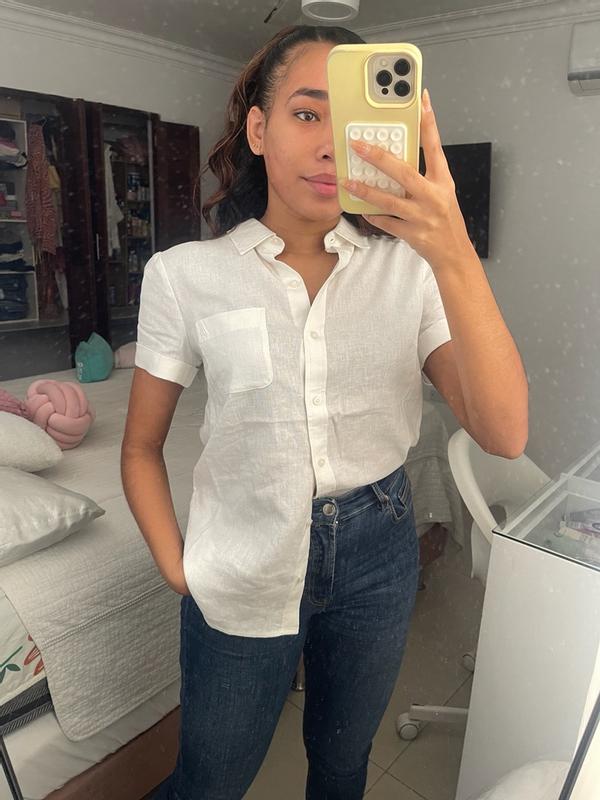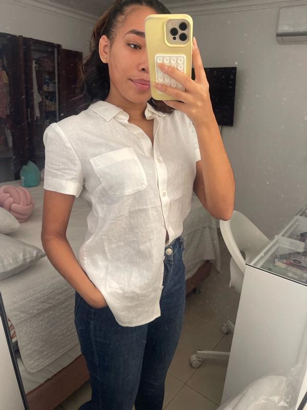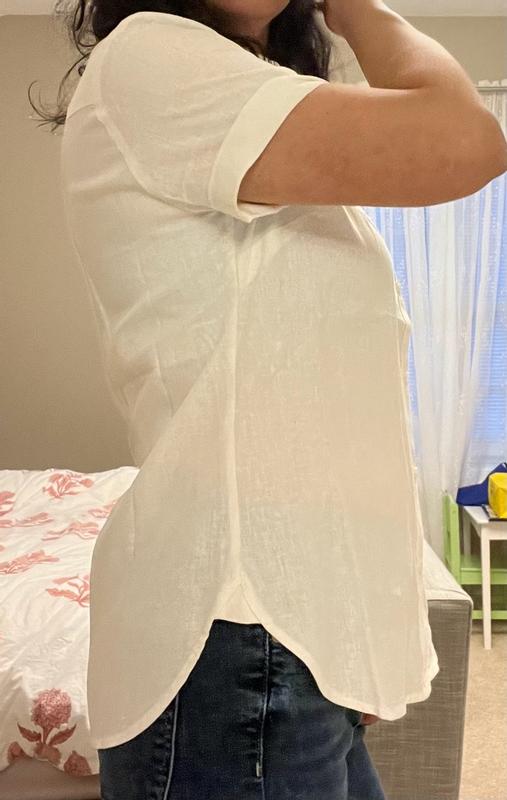 Super cute white top. Love that it’s linen, everywhere I look it’s always polyester now a days. Can be worn anytime and looks cute. Fits me perfectly. Good material and will be long lasting.