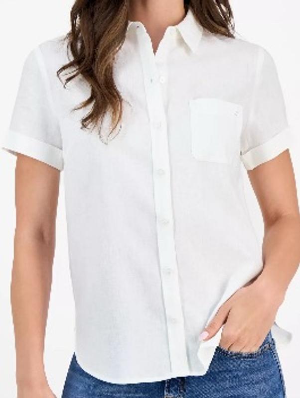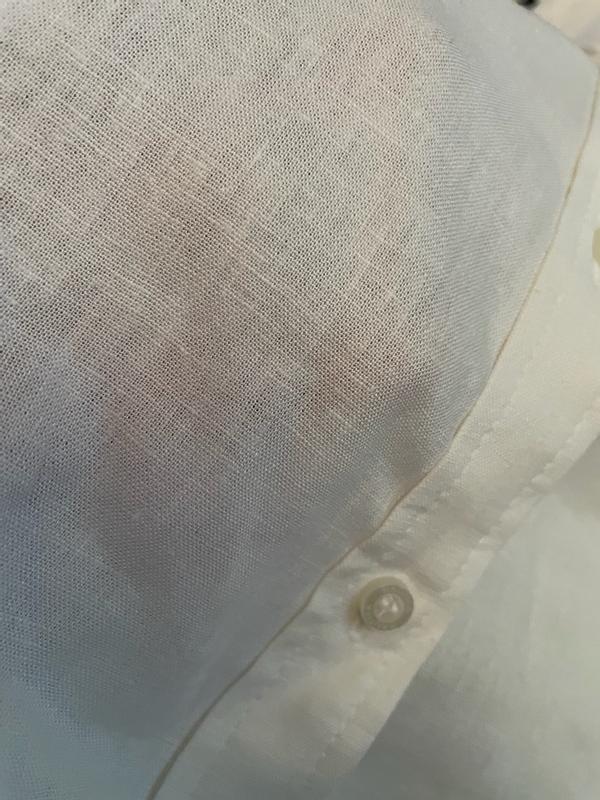 This is a very nice lightweight white linen blend shirt that fits everything from a pair of Jeans to a pair of pants. You can easily go from casual to dressy with it, It’s also easy to wash and dry too.