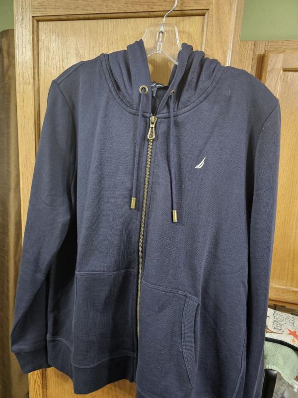 I love the style of this zip-up Nautica hoodie sweater. The fabric is super soft inside and out. The stitching from the hoodie to the sleeves is perfect. The fit is perfect and you can just visibly see how durable it will be. But with anything I wouldn't dry this hoodie.