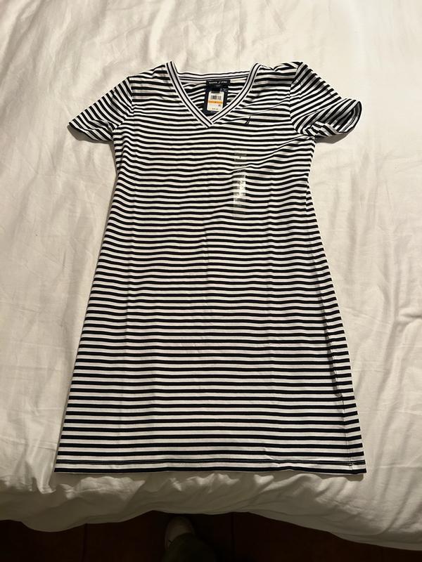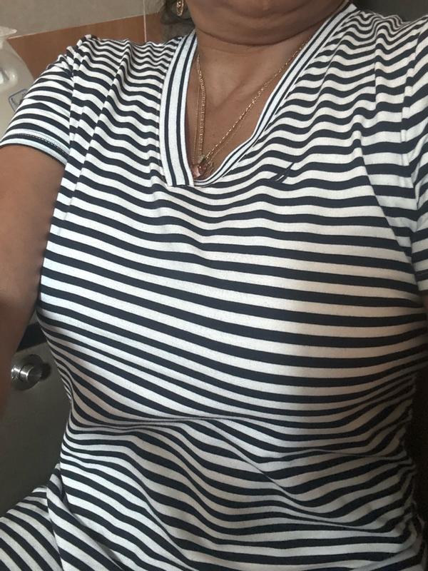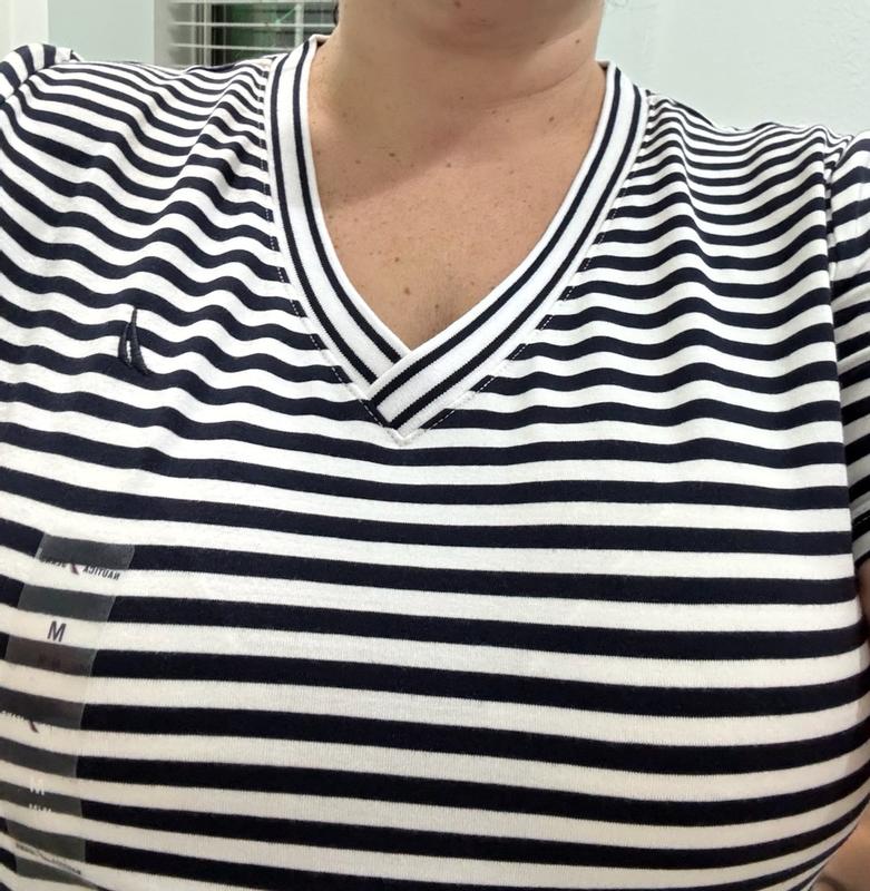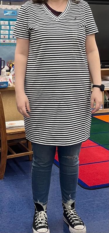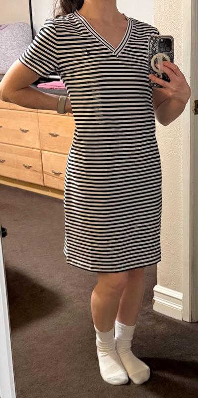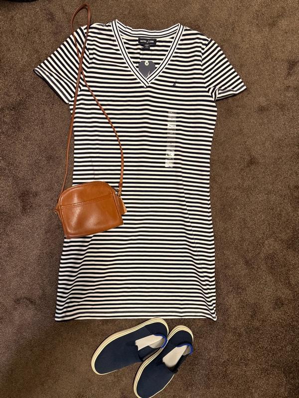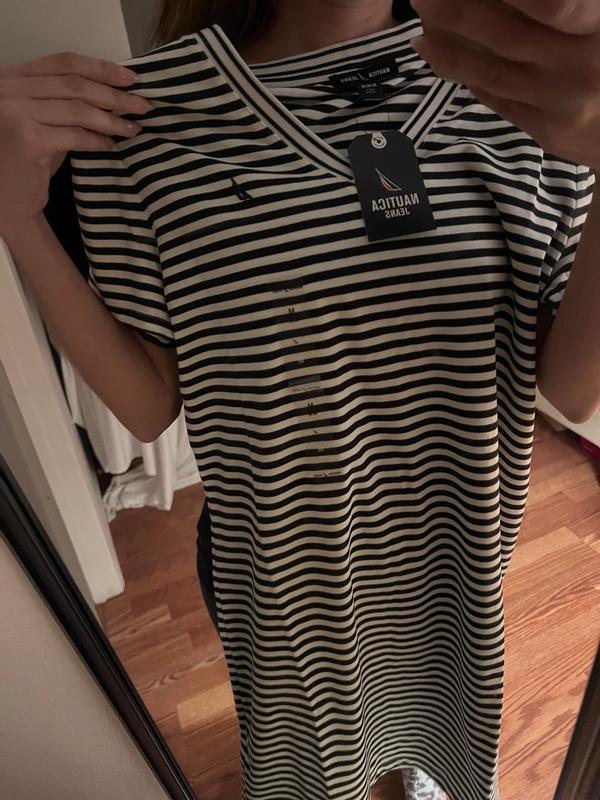I was pleasantly surprised by how comfortable and flattering this Nautica striped T-shirt dress is. The fabric feels soft, breathable, and lightweight, making it ideal for warm weather or casual days out. I love that it has a relaxed fit without looking oversized, and the length is perfect—not too short and not too long. The stripes give it a classic, sporty look that’s easy to dress up with sneakers or sandals. Overall, this dress feels well-made, fits true to size, and is great for everyday wear. I definitely recommend it if you want something simple, stylish, and comfortable.