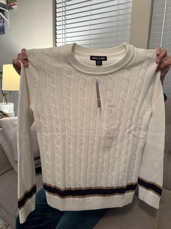 I received this Nautica sweater complimentary from Influenster, and I am honestly so impressed! The quality is outstanding — thick, soft, and very well-made. I ordered a size L and it fits me perfectly. The white color with the brown stripe detailing at the waist and wrists looks absolutely amazing. It’s simple, elegant, and very classy. I can already tell this will be one of my favorite sweaters for the season. Totally worth it!