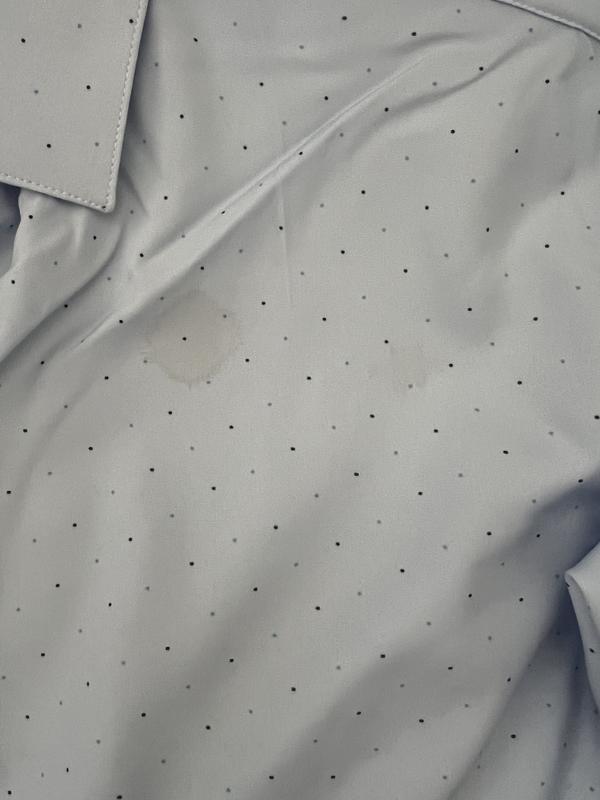 I opened the package and as soon as I was going to put it on, I found a stain on the shoulder of the shirt. Tried to return online and the response was “final sale.” Wanted to add a photo but it’s not letting me attach the pic. Very disappointed