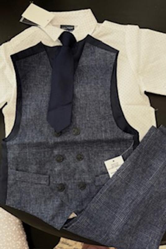 Toddler and Little Boys Shirt, Windowpane Vest, Pants & Neck Tie Set, 4 piece