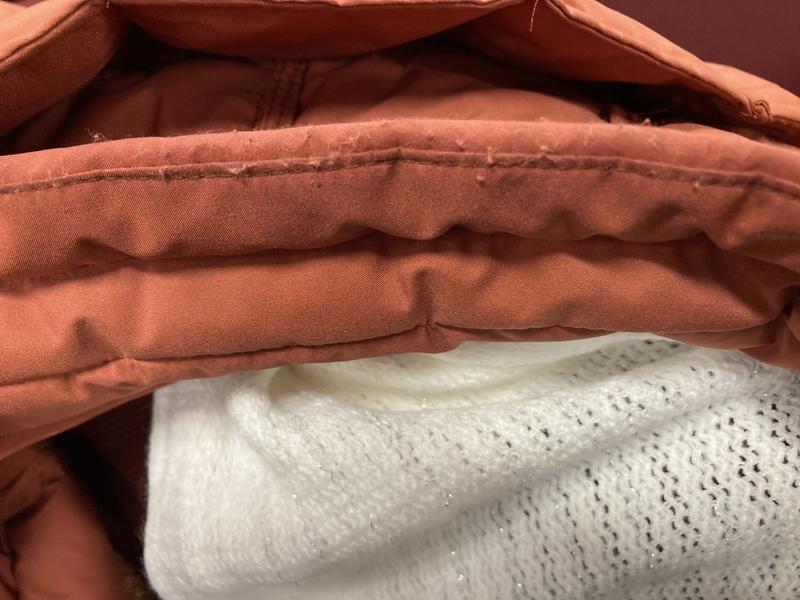 This coat arrived smelling like it was sprayed with a very very strong cologne which overwhelmed the room as soon as I opened the bag. This leads me to believe it was used and repackaged or masking a scent on fabric(?). Will not trust purchasing brand/macys online again for coats. Now the task of returning, too annoying.