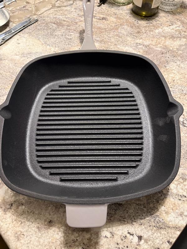 Absolutely love this cast iron grill pan! First of all it is so pretty, the color is gorgeous and I just love it! Secondly it’s major quality, this is a piece I’ll have forever, and I love investing in good products! Works like a charm, easy to use and maintain!
