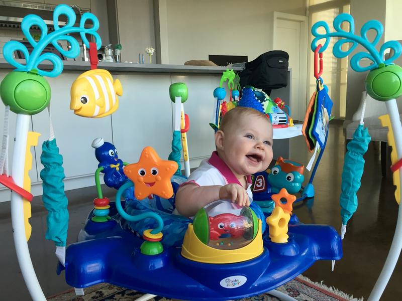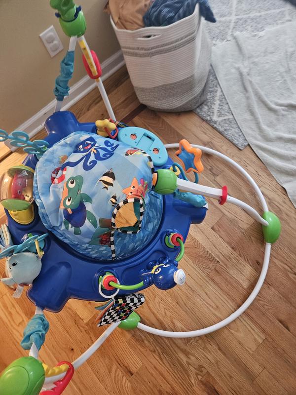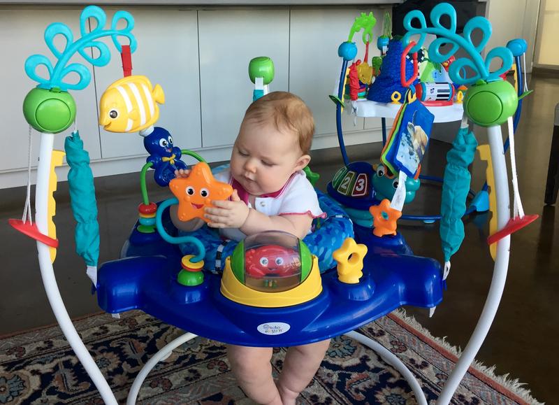 This Jumper has been amazing. The way baby sits in it, if appropriate height, there isn't risk to joints for jumping. Baby also loves going side to side. It's been amazing watching his hand mobility and coordination improve over the months. he first used the stars to pull in order to turn until he figured out how to do it on his own. The stars and the blue kelp(? the feature on top of the 3 legs) are great points to loop those silicone strings that connect to other toys like teethers or crinkle books without worry it will hit the ground.. and that has also helped teach him from the stars how to pull the rope up to get a toy that went over the edge, or from the blue toppers to reach and pull towards him. all the toys that came with the activity center have been great, he rotates and plays with them for quite a bit of time without getting bored. Very happy with this activity center.