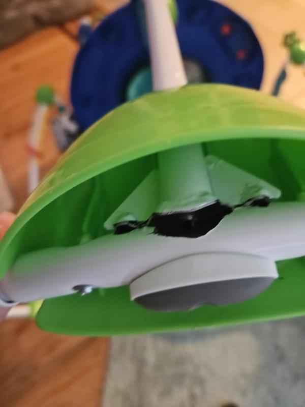 My son has loved this item. Recently, I know he's at the end limits for this item, he's 13 months, 30 inches, 24.5 lbs. Yesterday he was bouncing and the next thing I see, he's about sitting sideways on the ground. The piece on the bottom snapped. The turtle piece shorted out within the first 3 months and the company lacked when it came to replacing although they advertise replacement warranty for parts. Throwing out. Very disappointing.