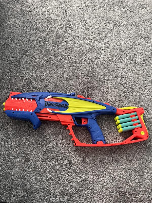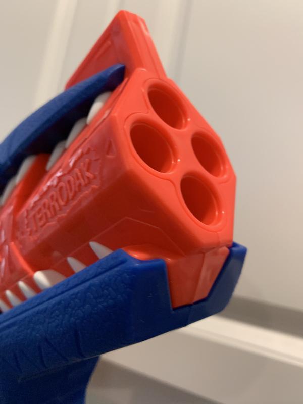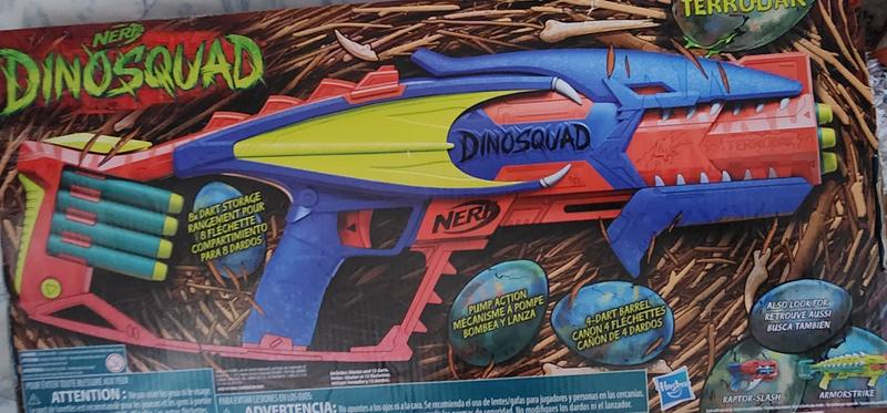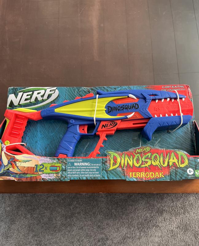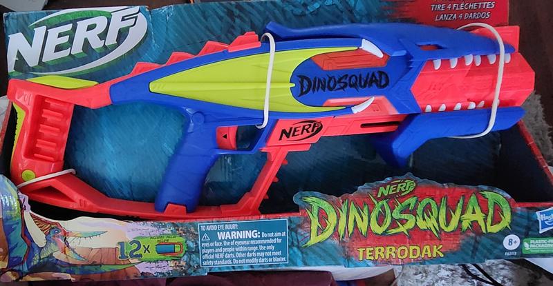 This NERF DINOSQUAD TERRODAK BLASTER is super AWESOME!!! We have so much fun playing with it. It shoots 4 darts and you can fire them all one right after the other! It also has an 8-dart storage for quick reloading. It's super easy to operate and has become one of my 7 year olds favorite toys!!