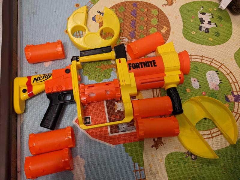 As a mom of 3 boys, two of them ages 7 and 10, Nerf toys and playing Fortnite are highlights in the house so this was a treat for them. The Nerf Fortnite GL blaster is larger than many of the other toys my sons have and really is a unique product with the six grenade-like blasters. My boys enjoy pumping and blasting the toy. There is no trigger which is another unique feature. It is a bit heavy for a smaller child but looks similar to the ones used during Fortnite games. This is a great toy that gets hours of use each time.