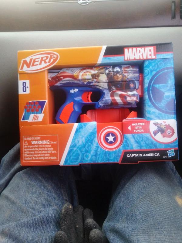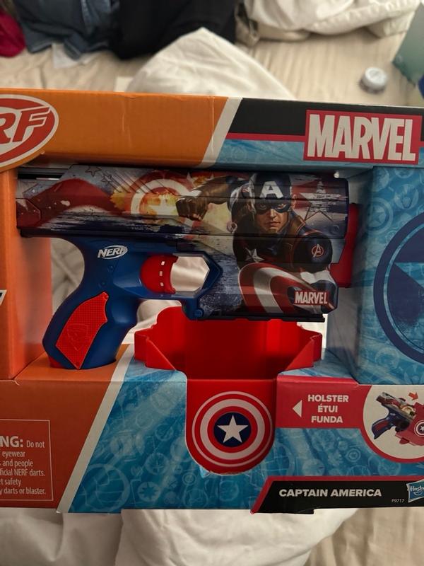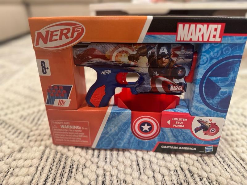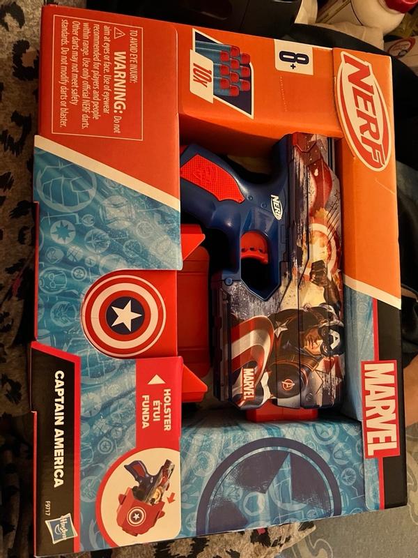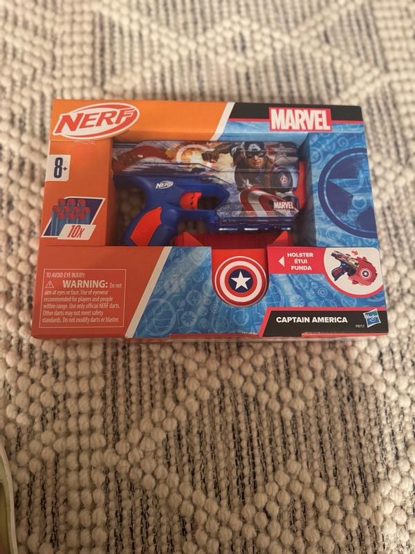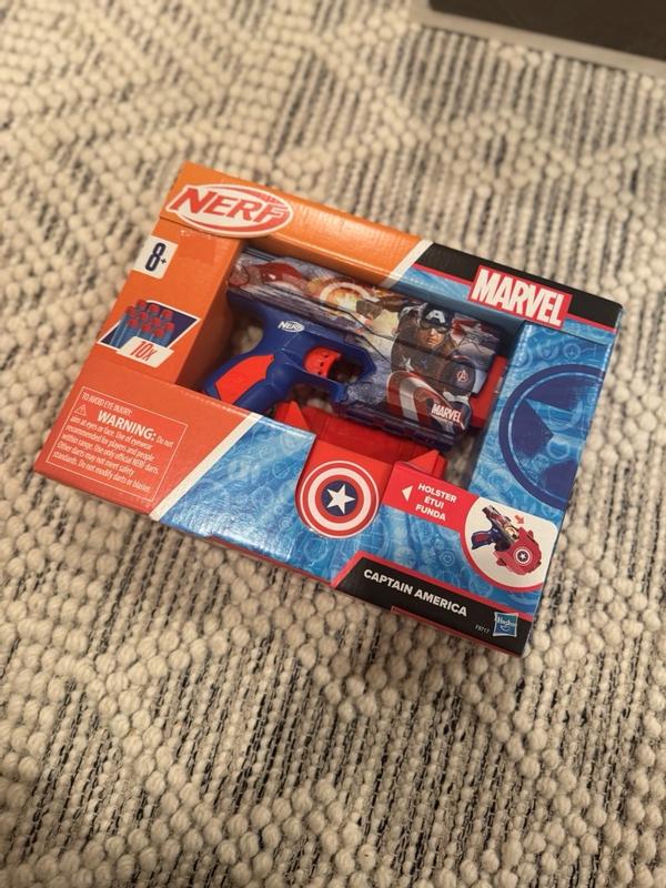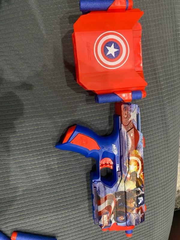 The Captain America Marvel Nerf Dart Blaster is a fantastic toy that brings the excitement of the Marvel universe to life. As a fan of both Captain America and Nerf blasters, I was thrilled to add this toy to my kids collection, and it has not disappointed. One of the standout features of this blaster is its design. It closely resembles Captain America's iconic shield, complete with the star and red, white, and blue color scheme. The attention to detail is impressive, making it a great collector's item for fans of the character. In terms of performance, the blaster is easy to use and provides great dart-firing action. The darts shoot accurately and with a decent amount of force, making it fun to play with both indoors and outdoors. The blaster can hold multiple darts at once, allowing for rapid-fire action that adds to the excitement of playtime. Another great feature of this blaster is its durability. It is well-made and can withstand rough play, making it suitable for kids of all ages and adults too.