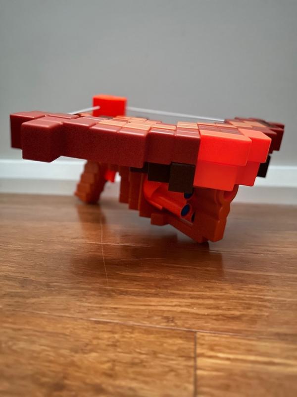 The Nerf minecraft pillagers bow was better than i had expected. We loved playing with it for hours together making targets and attacking imaginary mobs.