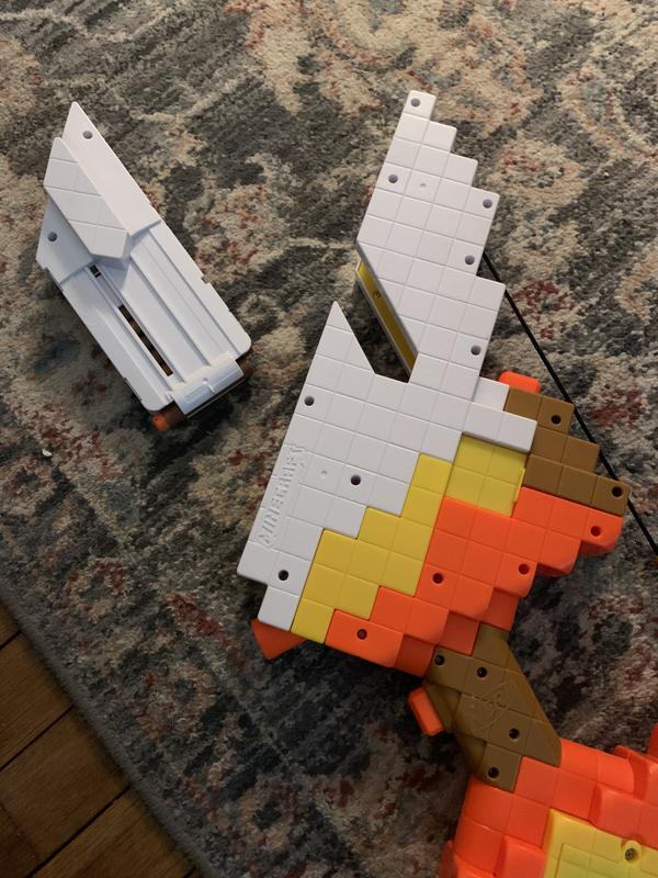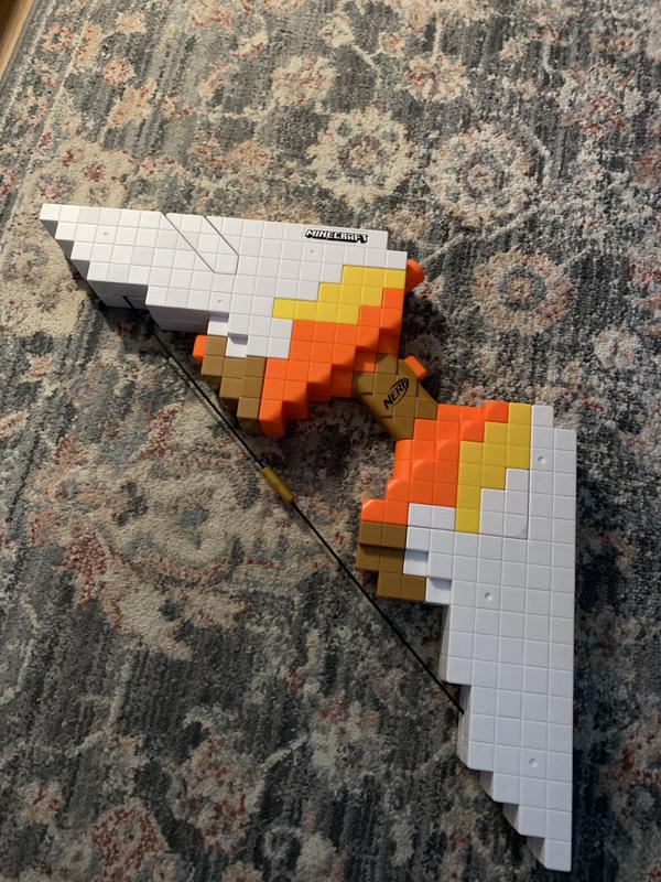 NERF and Minecraft have teamed up time to form of a Minecraft Dungeons-inspired Sabrewing motorized NERF bow. Definitely one of a kind. Easy to use, just pull the bow string and hit a button. It comes with a clip that hold 8 Nerf darts, making a rapid fire fun. Definitely not the normal Nerf gun but enhanced Minecraft style.