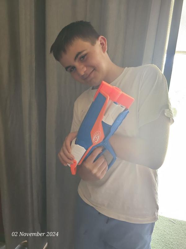 Easy to use, fun for my 10 year old. Large range of distance. Lightweight & easier than other nerf guns. A favourite in bright colours. Fun for adults too