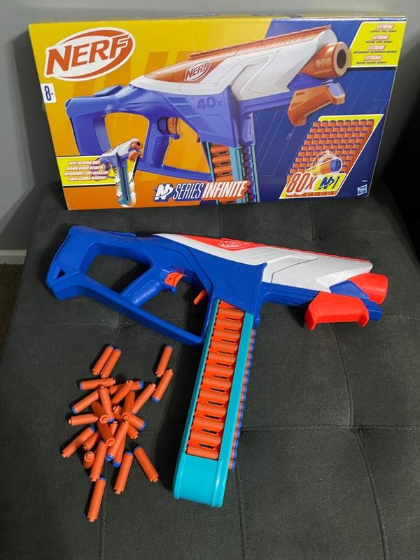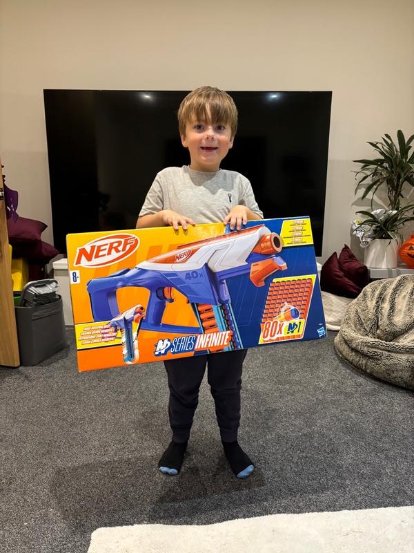 The Nerf infinite series is destined to Give all your family hours of fun together! We have had so many competitions with this and had so many laughs and memorable moments together. I love the power of it, the packaging was bright and appealing and the toy seems durable and great value for money.