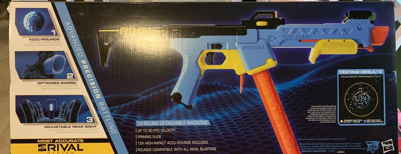 The Nerf Rival isn't your old Nerf dart gun! This thing can hit a target 20 feet away without a problem. The Rival is nice in that it does not need batteries to work. It appears to be like a spring type launcher, and I like that, as there is nothing more frustrating than pulling the Nerf guns out to find out all the batteries need to be replaced. Couple things with this, do not shoot people with this if they are closer than 10 feet, you'll leave welts and a lot of hurt feelings. I wish the "magazine" that came with this carried more than 12 rounds.