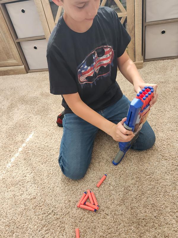 This nerf gun doesn’t mess around. It had a lot of power and works great. It’s easy to load and my older child loves this, (even his dad loves it). They can have their little nerf wars for what feels like hours lol. The quality is great as well and have had 0 issues with any of it. Just a fun toy to enjoy with others!