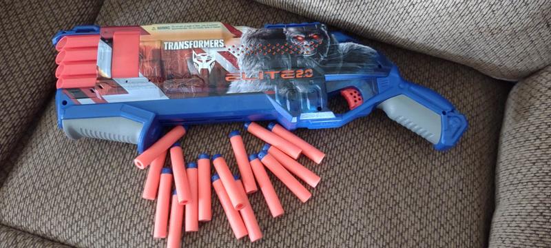 I loved that our new Transformers Nerf gun came with Sixteen darts! My kids loved it because well they love their Nerf guns! My husband loved it because it has the gorilla on it! All and all Nerf is always trusted for a good time.