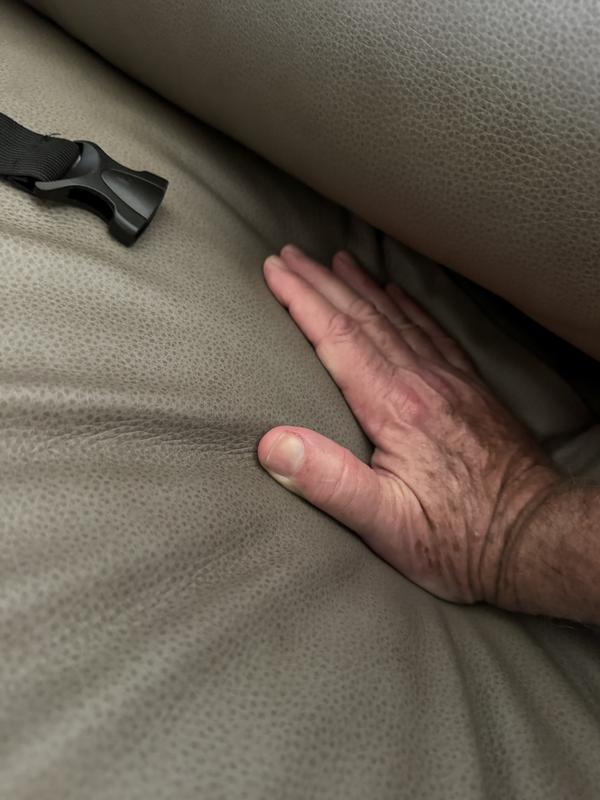 Love the color, the leather, the size, the extended foot rest. The big flaw is the seat spring. I am 5'11 and 220 lbs. Half the weight it is rated for. When I sit down, the springs sink and a 4" gap opens up between the top of the seat and the bottom of the chair back. This means the always there lumbar cushion is too far up. My husband also needs a chair, he is 6'6", 270 lbs, and the lumbar cushion hits him wrong too, upon sinking. We both wanted to love it so much! But will have to return for a hefty return fee. But at least we will get some of our money back. We are sad. :(. I have added a pboto of my hubby just pushing on the back, and you can see the gap. It is even bigger when a body is on the chair.