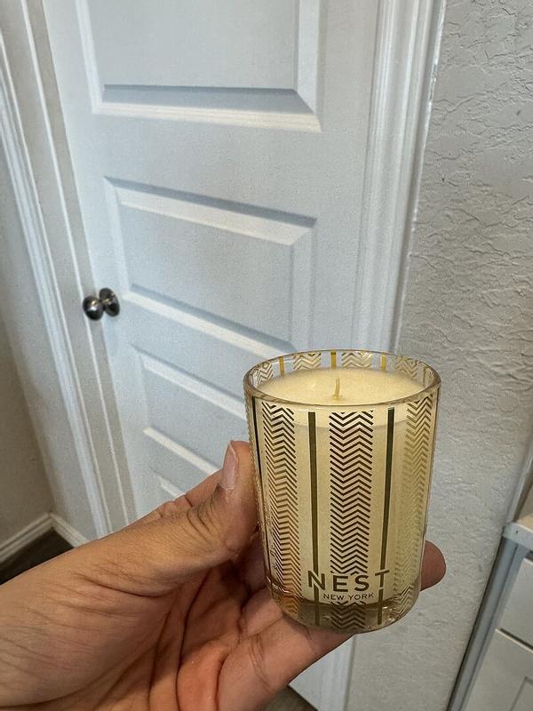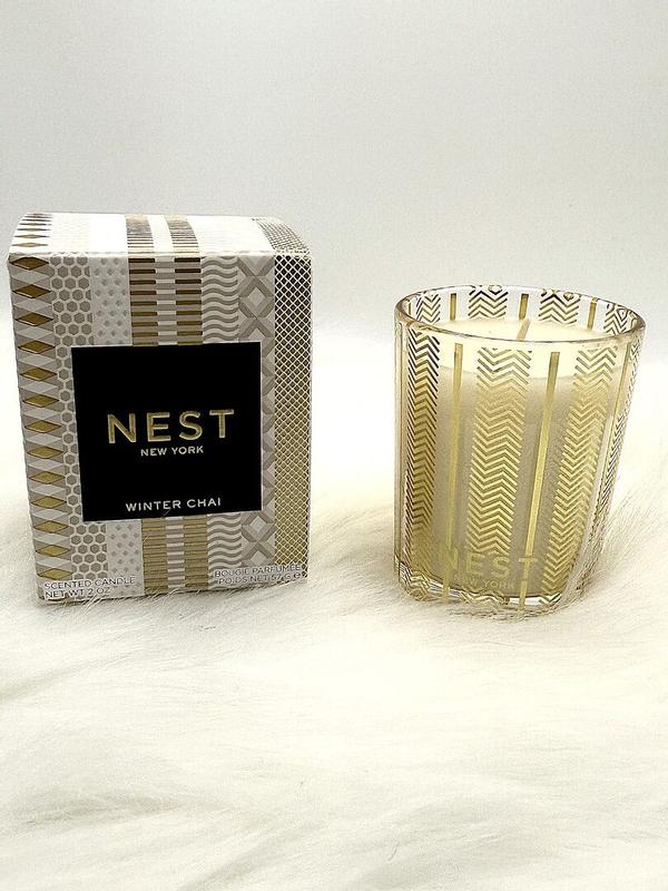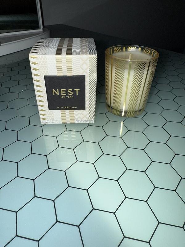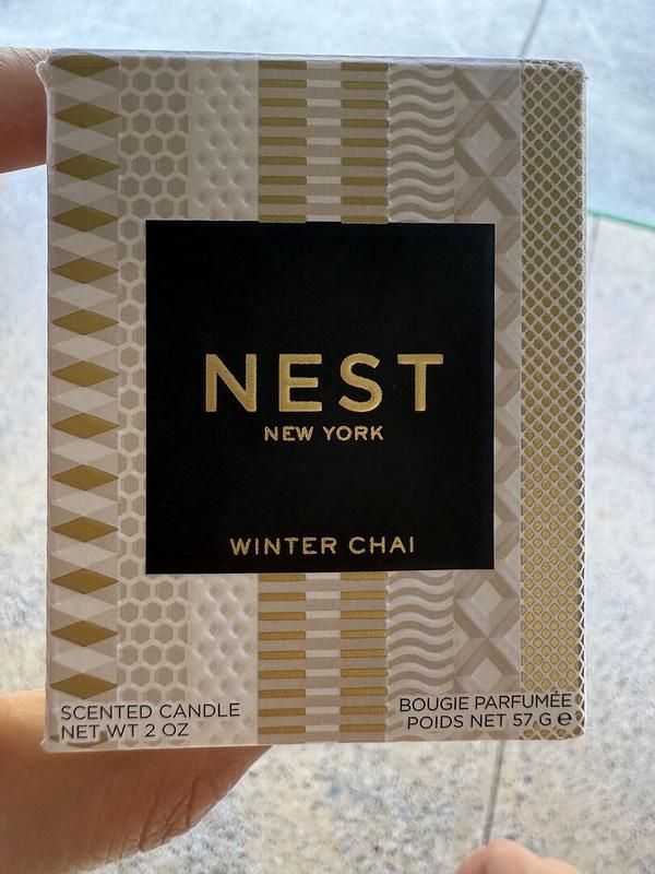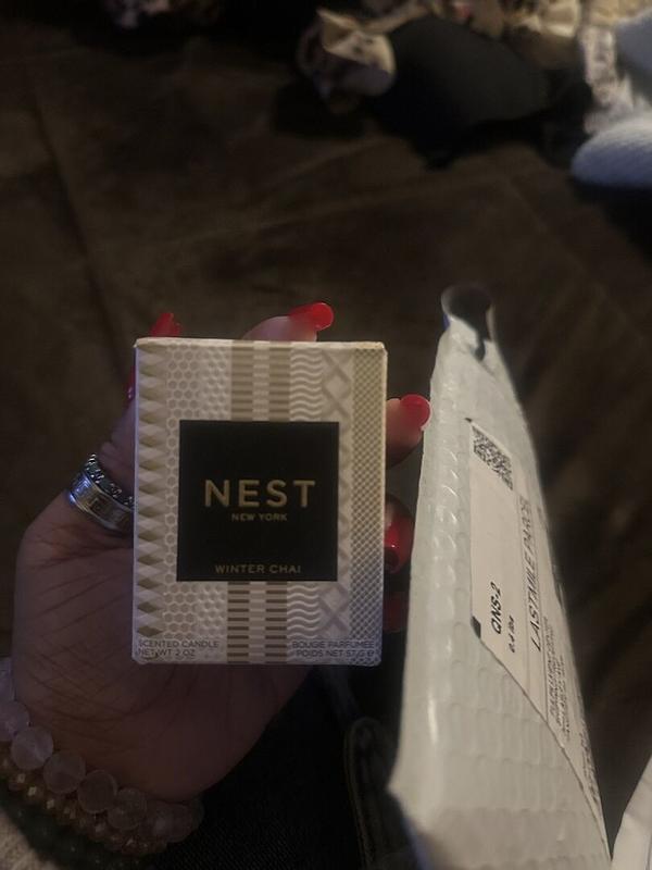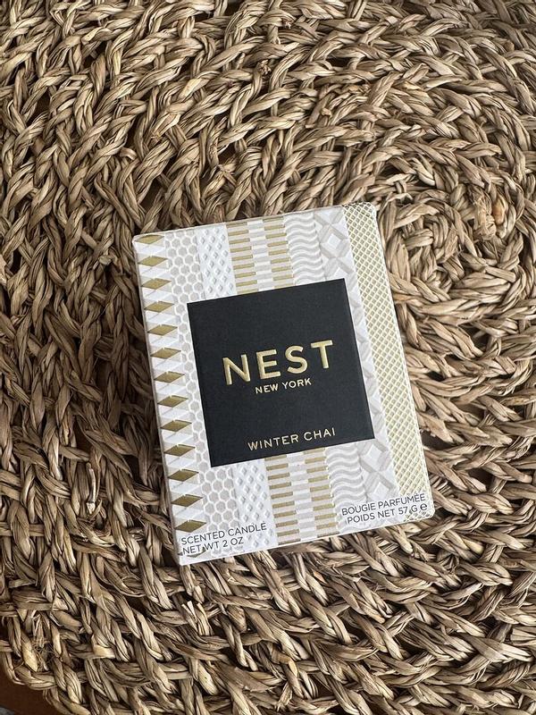 I love the scent of this candle. It has a cozy, warm chai smell that fills the room quickly without being overpowering. The only downside is that it seems to burn down faster than I expected. Overall, the fragrance is beautiful, just wish it lasted a bit longer. Complimentary from nestnewyork