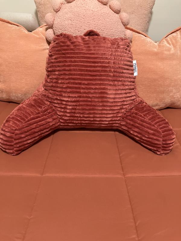 I am returning this reading pillow because it is 'childsize', extremely small scale. Other than size being too small for an adult, it is a nice quality pillow. Material and filling is soft and full and fabric colors are beautiful.