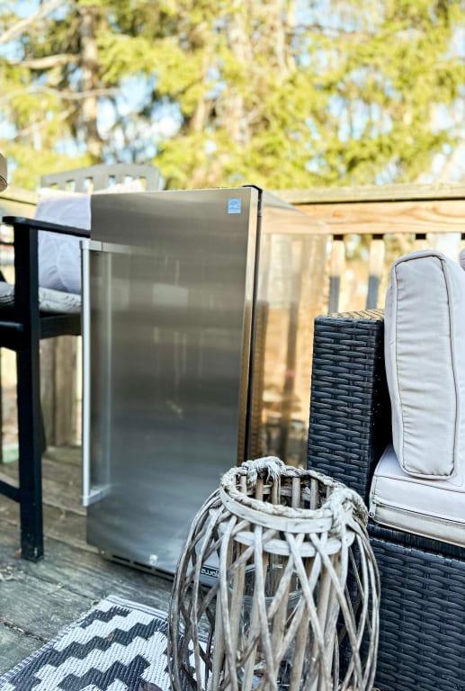 I am totally obsessed with this outdoor fridge! Not only does it look sleek and gorgeous and completely weatherproof it keeps your drinks chilled to the perfect temperature. I have several NewAir products in my home and love every single product! I highly recommend this if you are looking to add an outdoor fridge. You will not realize how much you need one until you get one!