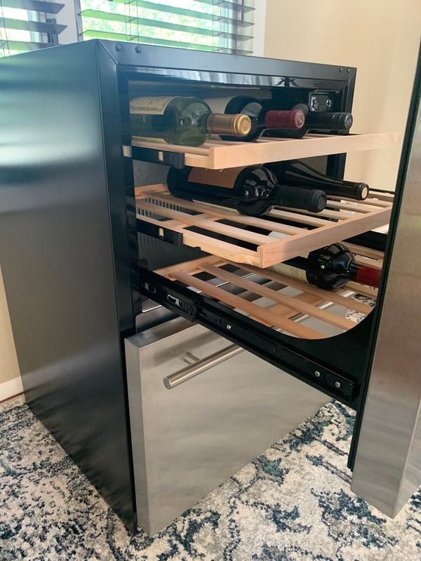 This beverage cooler is sleek and attractive in my kitchen. The drawers open easily, the wine racks glide smoothly. The bottom drawer quit cooling to temperature within a year of purchase. Although I could not find my proof of purchase Newair replaced the unit free of charge including shipping! The only reason I didn't give 5 stars is because of the failure to cool issue.