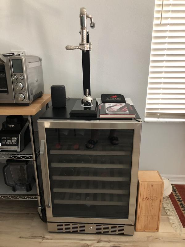 I am very happy with this product. It is very quiet, looks great in my kitchen island, and keeps the bottles at a perfect temperature. The New Air customer support is very responsive and the representatives are there to help customers with product questions.