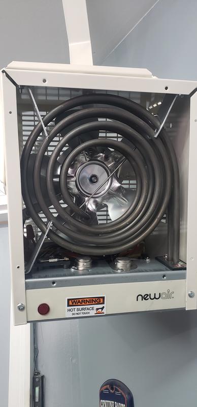 I purchased and installed this NewAir G73 in December of 2017 to occasionally heat our attached 2 car garage when needed. Apparently the fan stopped working allowing the heating element to overheat, destroying the heater and doing substantial smoke damage to our garage ceiling and covering the garage with soot.
