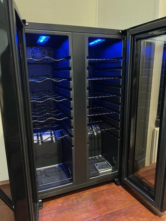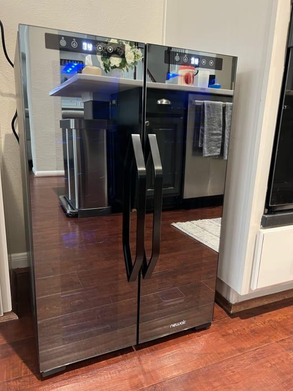I absolutely LOVE this Newair Shadowᵀᴹ Series 51 Bottle Wine and Beverage Fridge. I love that it allows me to free up space in my regular refrigerator and that I can select different temperatures for my wine and soda. Having my wine set at the right temperature will keep it fresh and preserved. Let's not forget the elegant, doubled panel mirrored glass doors that will blend perfectly into any home décor setting. I must also add that this unit's technology is amazing and that it is very quiet. There's even an LED soft blue light inside that illuminates your drinks...no struggle in the dark you can see all your drinks! Plus, everything you need to control your unit is right on the panel. I would recommend reading your manual before you plug your unit in. As usual, Newair is aware of what its customers want and need for their residences and businesses.