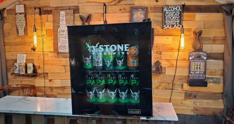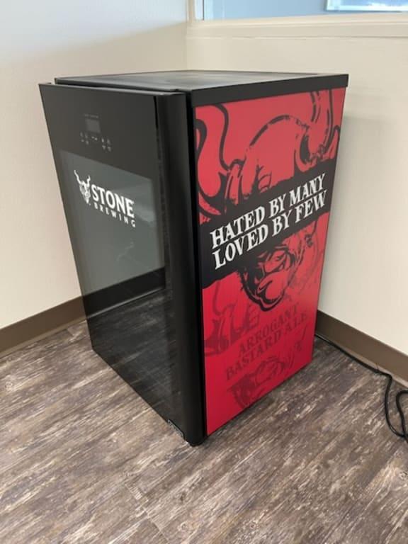 The Stone Brewing Live Buena collab is not only a super fun beverage cooler, but its the perfect size mini fridge to put conveniently in your kitchen for easy access. It's also great for entertaining. It ships right to your door safely with lots of padding to prevent damage and all you do is plug in, stock up, and your ready to go!