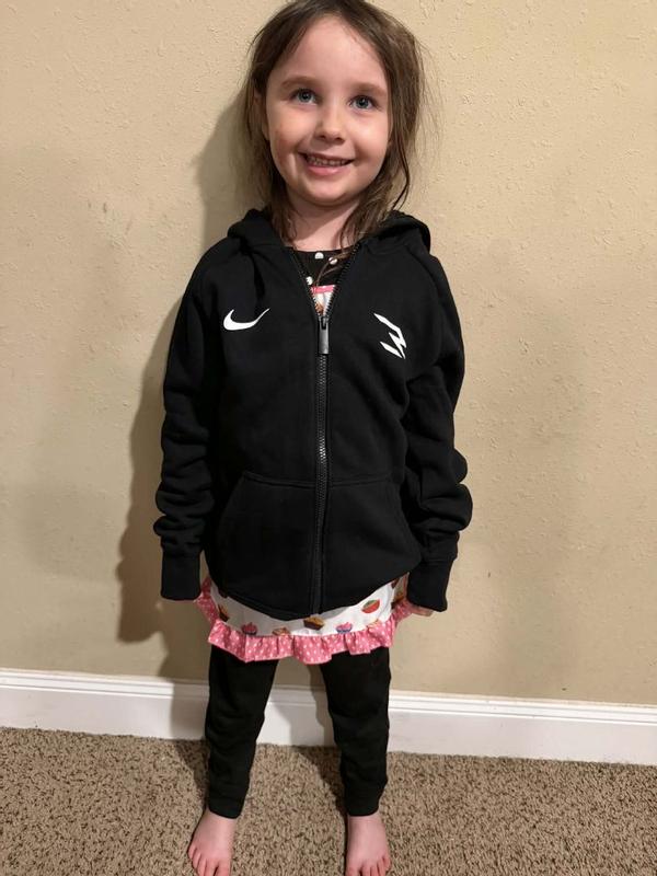 Picked this hoodie out for my son but he's going through the phase of "too cool for a coat or sweater" but his little sis kept begging for it so it's now hers as you can see! The hoodie is nice and thick, soft and warm. It washed and tumbled dry low beautifully. The design is sleep and will match almost any type of clothing and the sizing is spot on. All in all another hit from Nike and a great collaboration with Russel Wilson!