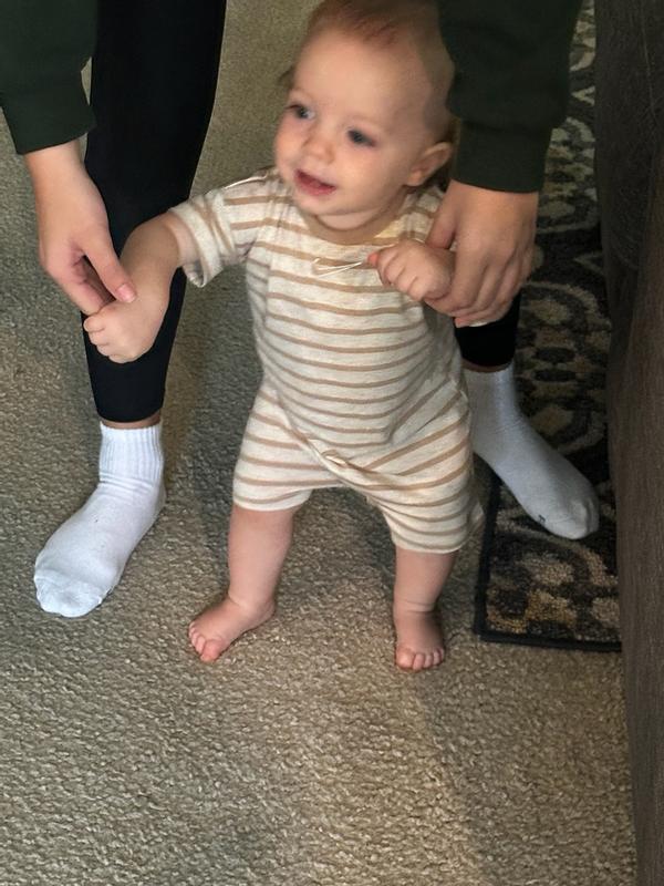 This makes the cutest nike set and so comfortable for the baby. It fits so well and the material is top tier. I will be buying more of these sets they last awhile and don’t turn dingy. You can use this onsie for all events