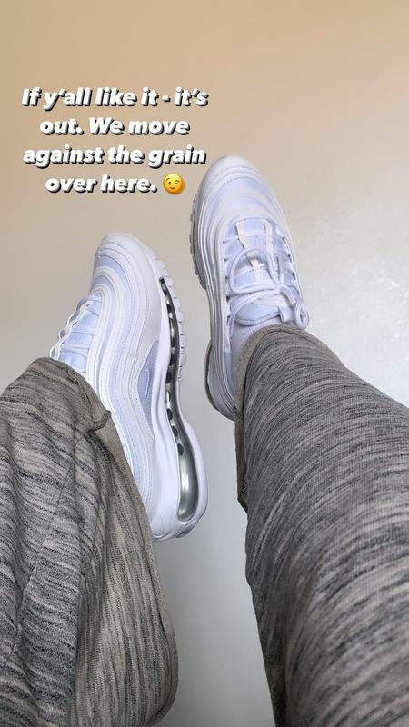 I saw this color and I just had to get it. I don’t have these colors in my closet and the fact that I was looking to buy some 97s just made it even better. The fit is amazing. I did go up half a size because the last pair I bought was a little tight.