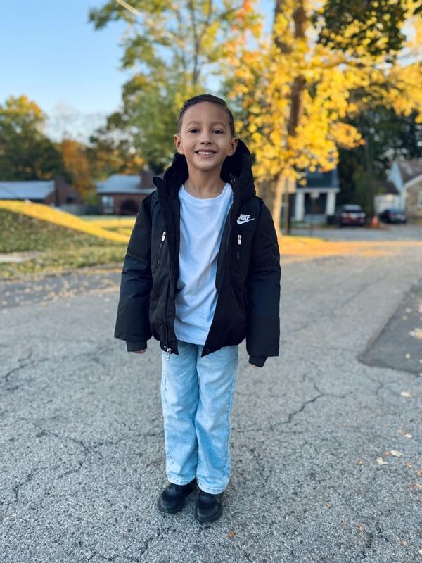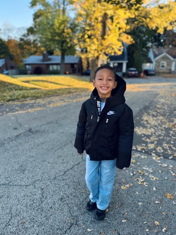 Thanks to Influenster and Nike, I received a Little Kids' Outdoor Jacket for free, in exchange for my honest opinion and review. The Little Kids' Outdoor Jacket has a great fit, water-resistant properties, and a stylish appearance. It is light and comfortable for everyday wear. While lightweight, it is great for layering over other clothes like hoodies or fleeces to provide more warmth in colder weather. The Little Kids' Outdoor Jacket has many features, including: - Attached hood; "Just Do It" graphic detail - Zip-front closure with snap placket - Logo details at left chest and back; color-blocked design - Two chest pockets; two hand pockets - Water-resistant weave fabric - 100% polyester - Machine wash - Imported