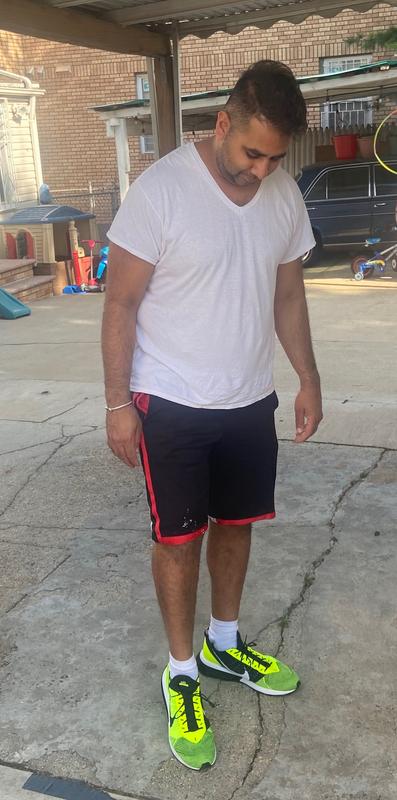 Love the shoe, very comfortable, but it runs alittle big. I normally wear a 14 but in this shoe I ordered a 13. I have the blue and the green is on its way. Keep it at the price you can't go wrong Nike..
