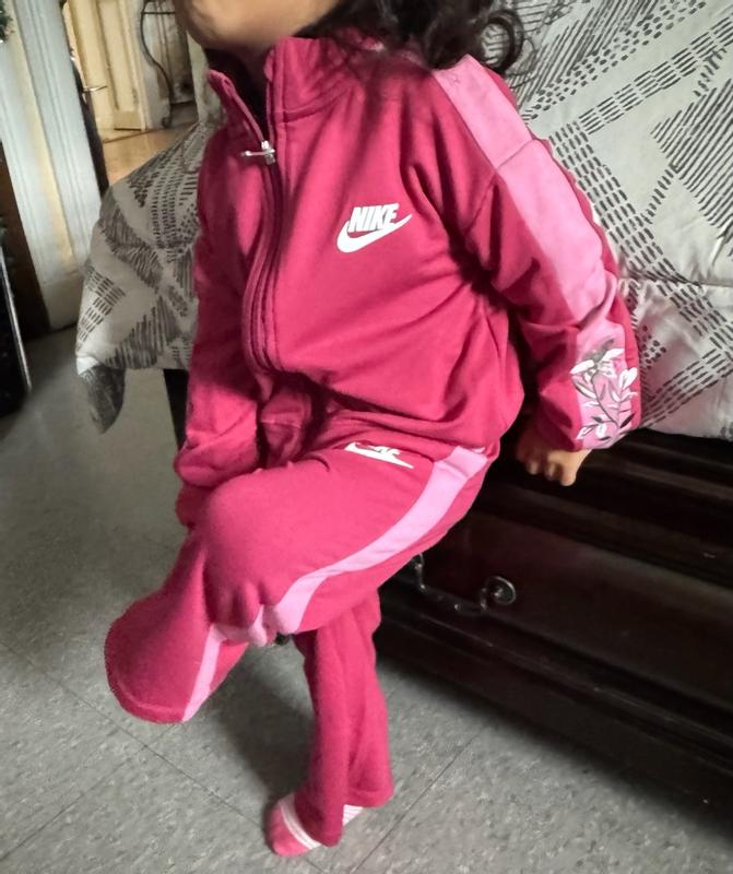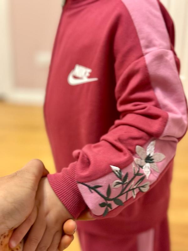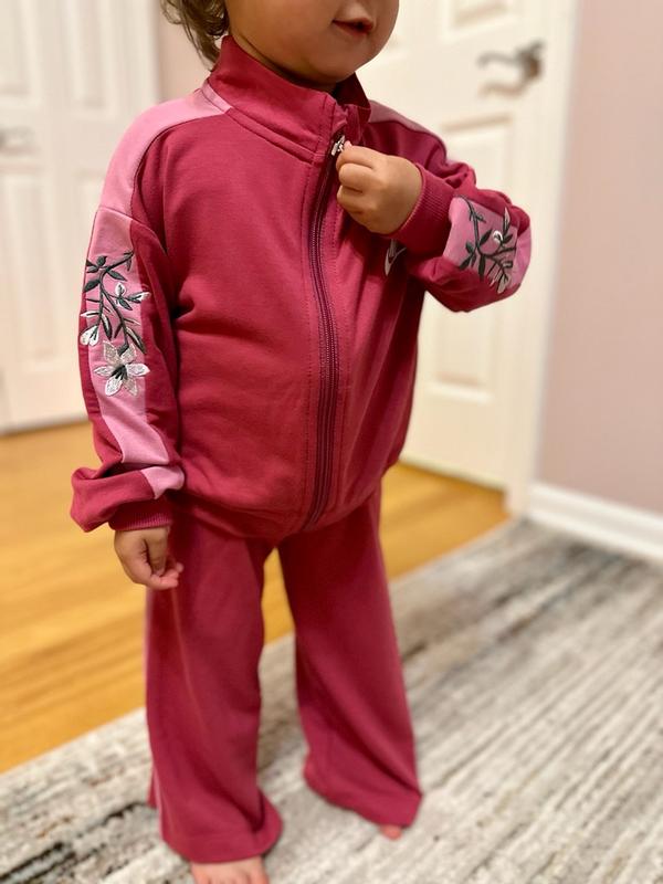 Got these new Nike kids floral track set for my niece and really liked it. Great design and style. Fabric quality is good , soft and comfortable . Lightweight and trendy styling . Embroidery detail adds a nice dimension. Size is a bit on the bigger side. Overall definitely recommend it.