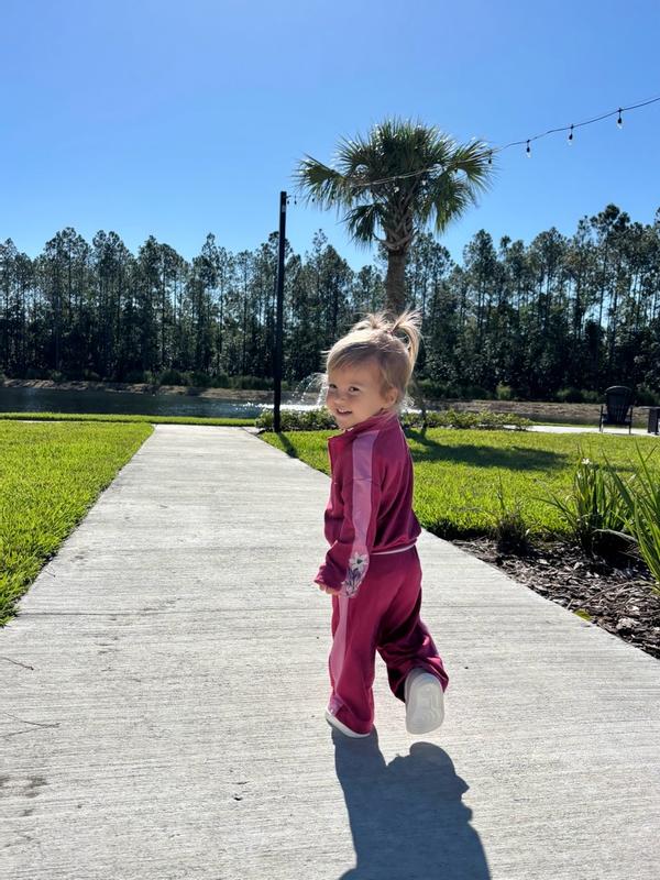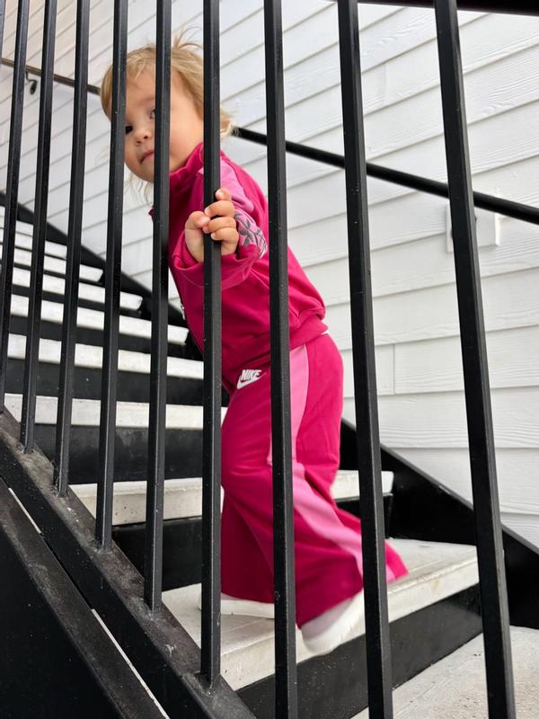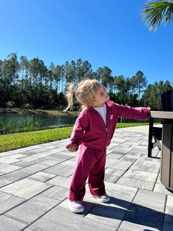 This is truly the cutest little sweatsuit for my 2 year old toddler. We got a size 3T, and while the pants and sleeves are a tad long, with shoes they’re great and the waist and everything else fits perfectly. It is so soft, a little thin compared to a typical sweat suit but the material is a dream and she loves it because it’s cozy and doesn’t itch her anywhere. The flower details on the sleeves are her favorite part for sure. If you have a toddler who loves to run and jump around, but also want something super cute and on trend, BUY THIS IMMEDIATELY. Nike holds up well in my opinion, with one wash it still feels just as soft and looks great, since it’s thin there’s always a risk of holes in the knees, at least for our family, but those are unavoidable if they fall on pavement too many times in my opinion.