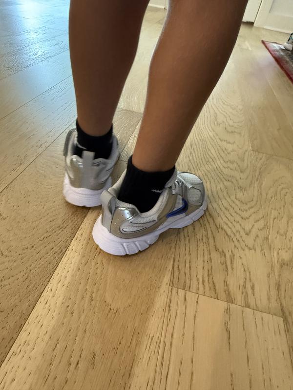 These sneakers are super cute. The silver metallic and blue design go great with many of my toddlers outfits. I love that these sneakers have a wide toe box so her littles piggies have plenty of wiggle room. They’re nicely cushioned and I really like the easy on elastic straps with the velcro. My toddler is not a big fan of wearing shoes in general, but she doesn’t seem to mind when I put these sneakers on her. With that said, the only negative thing I have to say about the V5 Runners is that the construction could be a little better. Right out of the box the sneakers and several thread ends sticking out all over the shoes. From a brand like Nike I do expect a better finished product, but overall I’m happy with these shoes.